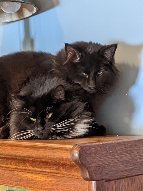 Circe brought her kittens to safety in a horse barn. And she was right, as they were all warm, fed, and eventually placed in forever homes. But Circe remained wary, especially when she and her kittens were trapped and brought into the confines of a strange house. While flight would certainly have been her choice of response, she resorted to freeze. Sadly, several who misread her ‘willingness’ to be petted probably contributed to her lifelong determination to not be touched, even as she kept herself in close company with humans.