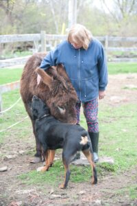 Once upon a time on a farm in Ontario, the animals began to collect in the care of a kind woman named Lorelei. Lorelei did not have a lot of time for people, but when Donkey needed to be rescued from an abusive situation, Lorelei had lots of time to tell Donkey that he was loved. Then Donkey was joined by Llama so that they could keep each other company. All under the watchful eyes of dogs Sadie and Bran. Many cats also came looking for a safe place to eat and sleep.